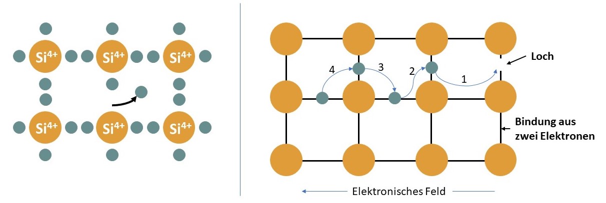 seine Position in dem Gitter verlassen und hinterlässt dann ein Elektronenloch