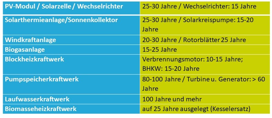 Auch wenn erneuerbare Energieanlagen grundsätzlich als nachhaltige Anlagetechnik einzuordnen sind, weil sie grüne Energie erzeugen, ist bei ihrer Produktion, ihrer Standortwahl, ihrem Betrieb und ihrer teilweisen Erneuerung (Repowering) bzw. endgültigen Entsorgung eine Umweltwirkung unvermeidbar. Beispielsweise verursacht der Neubau von Windkraftanlagen oder Wasserkraftwerken, z.B. auch verbunden mit dem Bau großer Staudämme, einen hohen Bedarf an Stahl und Beton. Deshalb bedarf es der tieferen Betrachtung dieser Aspekte. Erneuerbare Energieanlagen können langlebig und recycelbar gebaut werden. Es ist eine maximale Ressourcenschonung bei der Anlagenentwicklung anzustreben.