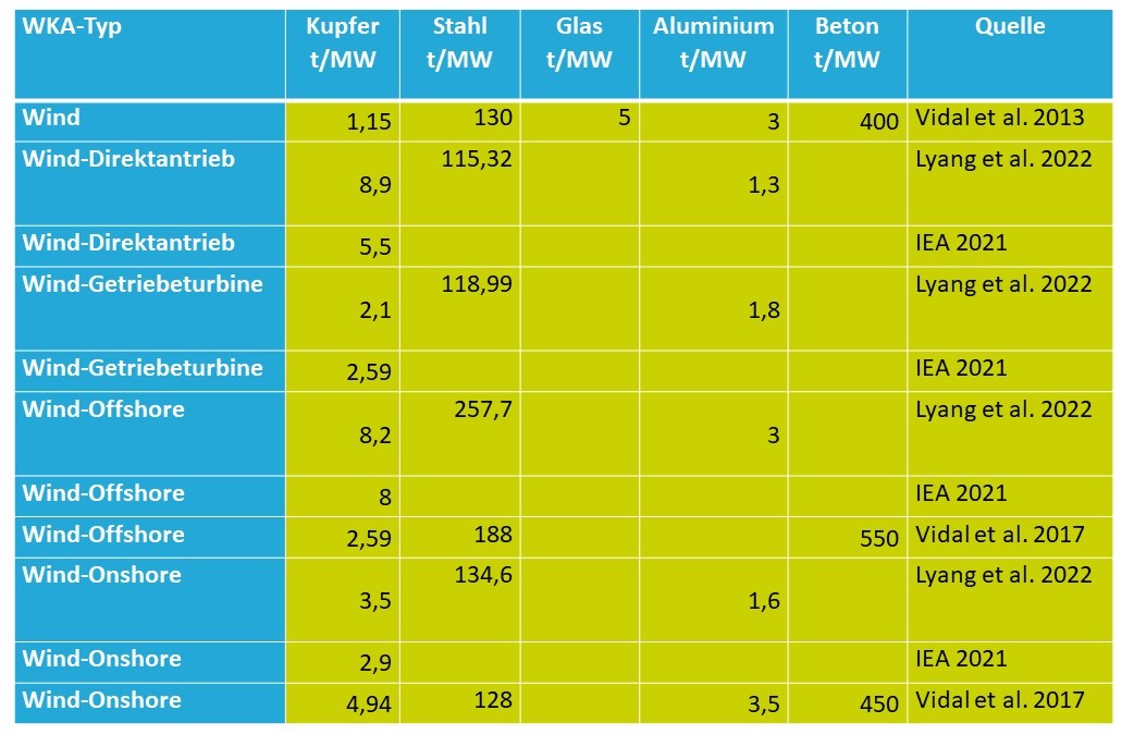 Material-/Rohstoffverbrauch von erneuerbaren Energieanlagen