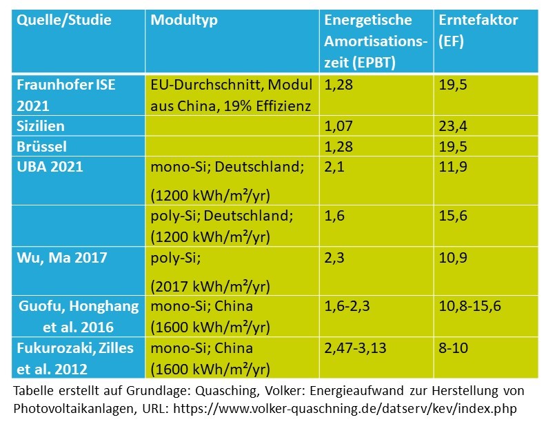 seiner Herstellung verbrauchte Energie zurückzugewinnen. Ein kurzer Amortisationszeitraum