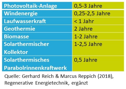 Energetische Amortisationszeit Erneuerbarer Energien im Vergleich