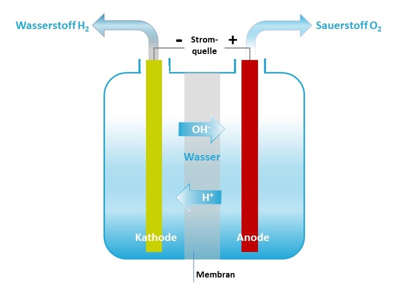 Vereinfacht gesagt ist dies eine Umkehrung des Prinzips der Brennstoffzelle.