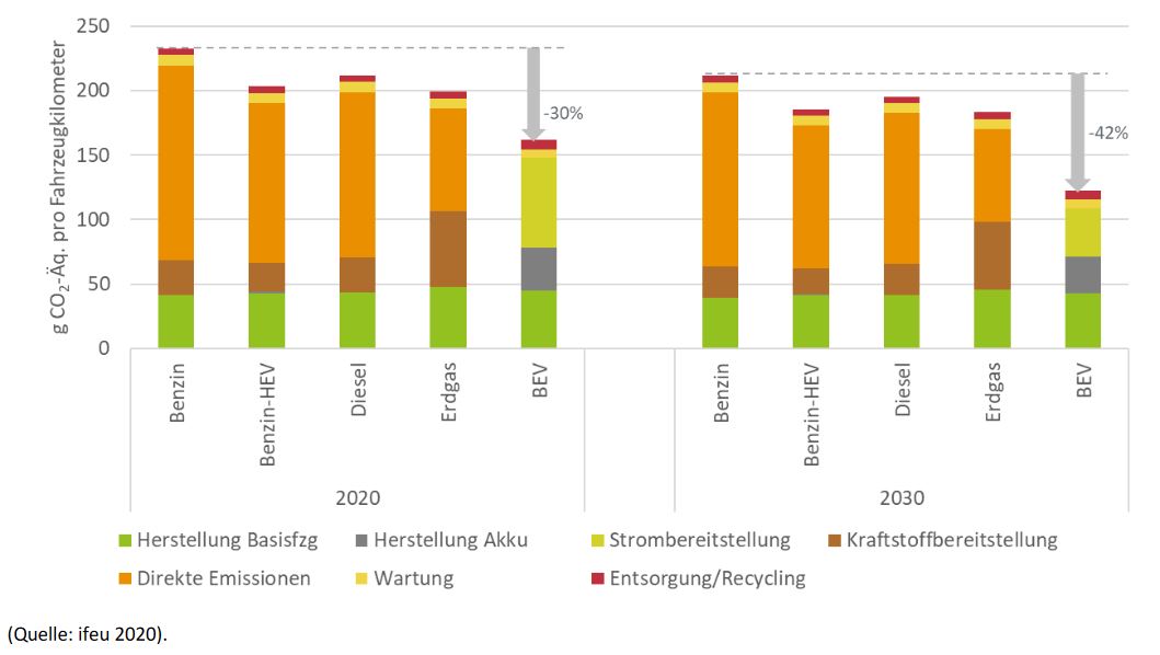Elektroautos verursachten im Jahr 2020 ca. 30 % weniger Emissionen als ein