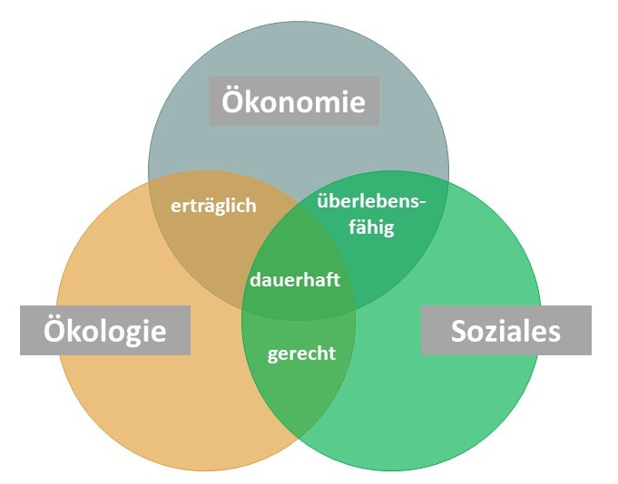 nachhaltigen Entwicklung spricht, sollten diese drei Aspekte der Nachhaltigkeit