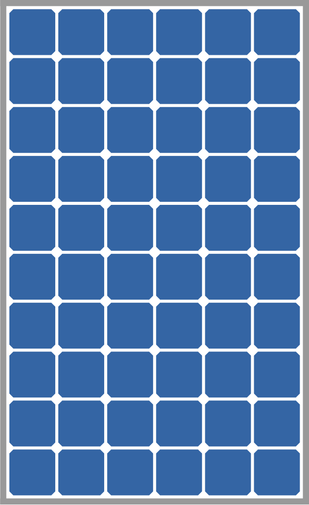 Solarzellen sind in Reihe geschaltet und in zehn Reihen und sechs Spalten