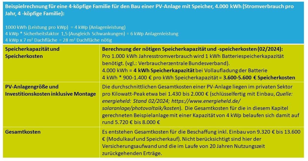 Rahmendaten zur Dimensionierung einer PV-Anlage inkl. Speicher für eine Familie: