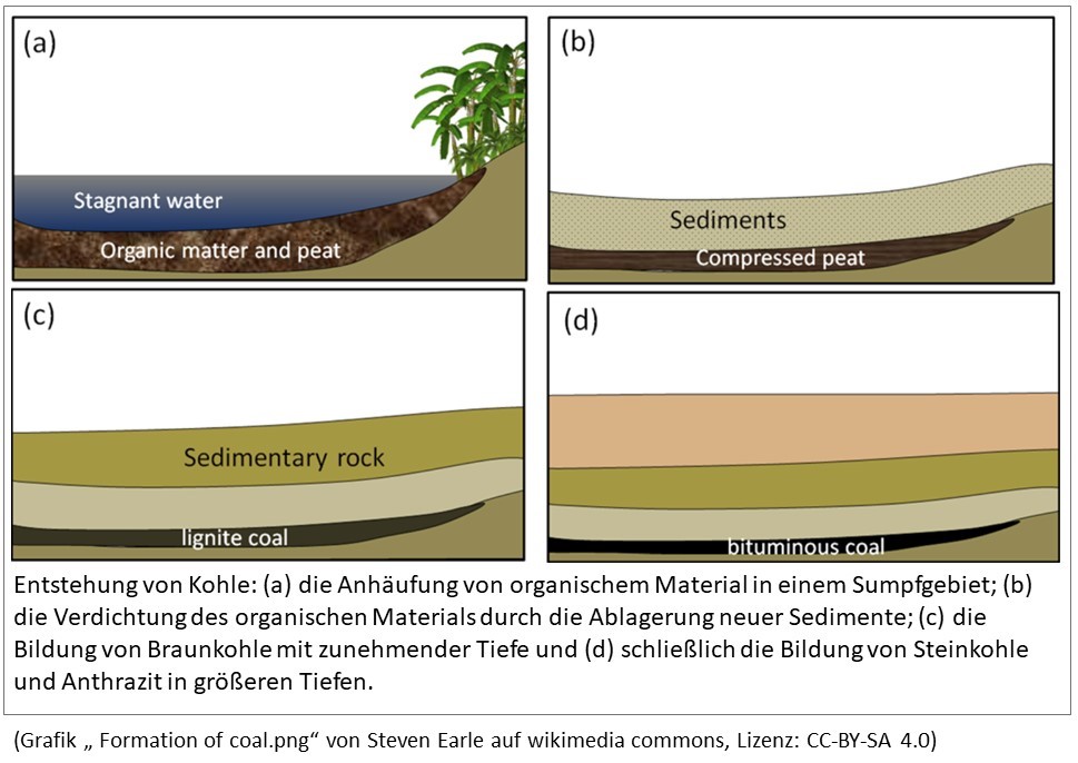 fossilen Energieträgern. Zuerst entstand Torf, der auch heute unter Mooren