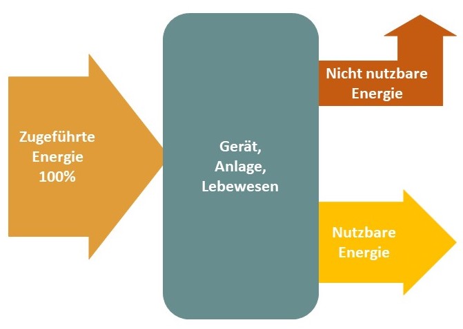 Die Umwandlung ist dabei nie vollständig, bei jeder Umwandlung wird auch Wärme