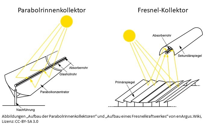 Im Unterschied zum Parabolrinnenkraftwerk werden bei einem Fresnelkraftwerk