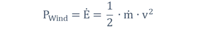 Die Windenergieanlage nutzt die im Wind enthaltene Leistung und wandelt diese mit dem Windrotor erst in mechanische und dann über einen Generator in elektrische Energie um. Jede bewegte Masse m (z.B. der Wind, der um die Rotorfläche streicht) enthält kinetische Energie Ekin. Sie ist gleich der Hälfte der Masse des Körpers mal dem Quadrat der Geschwindigkeit v.