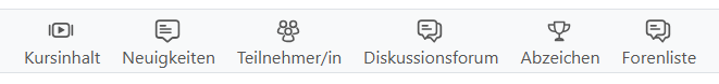 Abzeichen: Hier werden ggf. Badges und Teilnahmezertifikate für den Kurs aufgeführt.